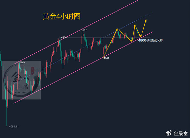 周末市场仍有谈判相关消息,若消息面持续利好,下周初黄金将延续冲高节奏。下周黄金关键点位及操作思路:短线支撑:重点关注4800,下周行情只要依托此支撑位运行,全程保持看涨思路;短线阻力:当前第一压力看4890(周线10日均线位置),若顺利突破此位置,下一步将逐步逼近4960-4970区间(4800-4856通道上轨阻力衍生位);中期目标:后续行情大概率向5000关口靠拢,抵达该区域后需注意分批减持;短期1小时技术面呈现明确偏强态势,布林带开口向上,金价依托5日、10日均线稳步上行,始终站稳均线之上,均线形成标准多头排列,短期均线向上穿越长期均线形成金叉,MACD指标在零轴上方运行,红柱温和放量,多头动能持续释放,KDJ指标向上发散,仍有上行空间。综合来看,今日黄金短线操作思路上金晟富建议回调做多为主,反弹做空为辅,上方短期重点关注4890-4900阻力,下方短期重点关注4800-4780一线支撑,各位朋友一定要跟上节奏。要控制好仓位及止损问题、严格设止损,切勿抗单操作。具体点位以盘中实时为主,欢迎前来体验,交流实时行情,进群关注实时单。