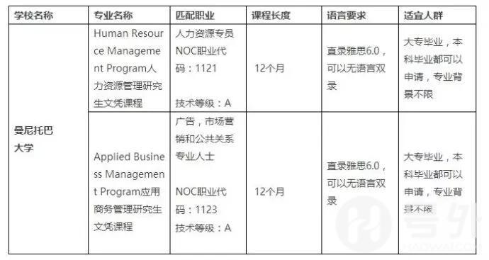 IES职业就业类别:曼省毕业生只需要持有为期1年的雇主合同、职业符合曼省紧缺职业列表、语言达到CLB7(雅思4个6),无需工作即可申请移民!