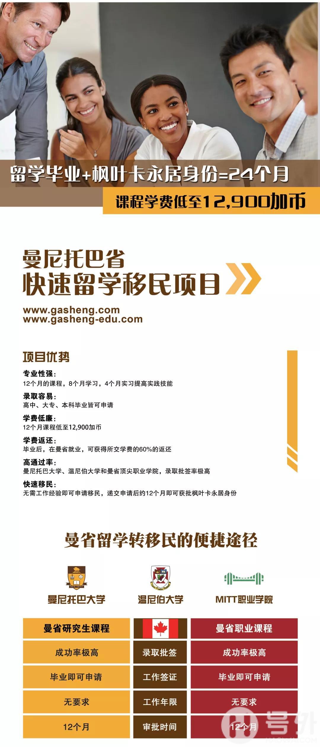 加拿大拥有世界上最完善的教育体系,学习条件世界一流,每年都吸引很多学生前往。其中曼省留学移民项目更受到众多中国留学生的欢迎。先留学,再工作,后移民,时间跨度约1-2年,留学生即可快速获得枫叶卡。
