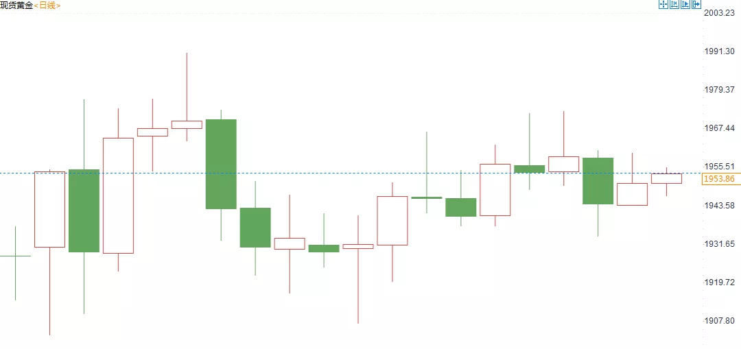 金裕金融讯:周一(9月21日)亚市早盘,因美元指数走弱,且对经济从新冠危机中的复苏感到担忧,国际黄金一度涨破1955美元关口,目前金价小幅回落至1953美元附近。国际金价上周五小幅走高,亚盘期间小幅上扬,欧盘期间有所回落,随后在美盘初加速上涨,尾盘回吐部分涨幅,日线收出一根小阳线。本周黄金还会涨吗?具体详情请关注下方详解!