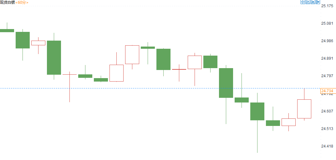 白银方面,因美元有所走强施压白银。昨日白银跟随黄金冲高受阻后小幅回落,盘中自高点25.08震荡下跌至24.36附近,终小幅收跌。日内开盘白银有所震荡反弹修复;金裕金融技术面分析,白银维持着震荡下跌走势概率大,短线来看白银将继续震荡下行,策略上偏向于顺势看下跌。黄金开盘于1923.96,最高触及1925.94,最低探至1894.58,收于1903.64;白银开盘于25.01,最高触及25.08,最低探至24.36,收于24.70。