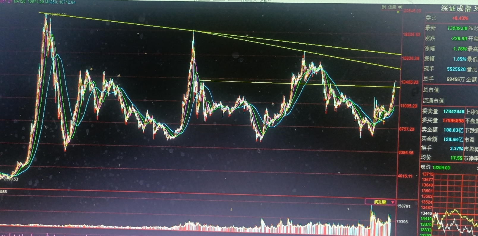 随着该两低点连线与近阶段的3900点压力带逐渐收敛,估计未来两个交易周内,在国庆后沪指会有一个重要抉择,或上破3900点阶段压力带,或跌破30日均线与上述两低点连成的上升趋势线,上破需要进一步放量,以及几大科技龙头再度走强或大金融回升,而即使跌破估计下跌空间也不大,之前本栏分析的2015年9月以来所形成的近10年长期大箱体上边,即3730点水平带一带上破后或形成较强支撑。