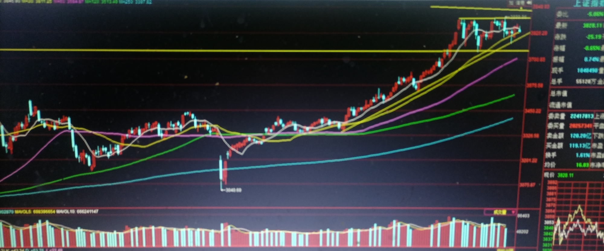 阶段上,按本栏之前分析,8月下旬以来,沪指几度冲高接近3900点呈现一定消化压力。今年5月以来,沪指以30日均线为上升趋势线,9月4日跌近该线而止跌回稳,上周四、周五也跌近而形成一定抵抗,本周二曾一度跌破,但受今年6月23日3347点与8月4日3547点两低点连成的上升趋势线支撑,该两低点连线与30日均线同为本轮上升趋势线。