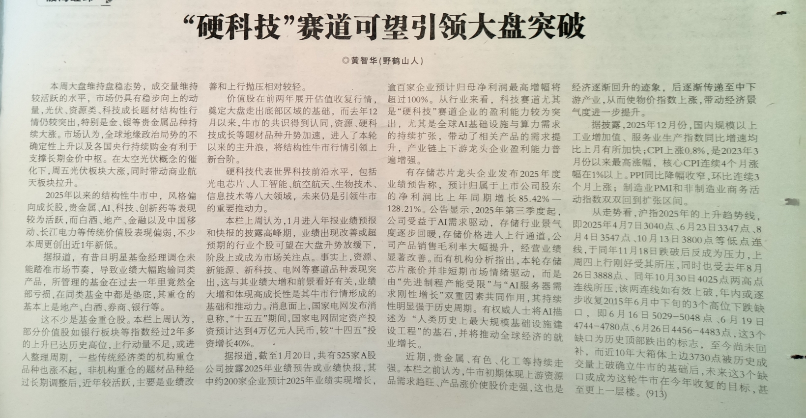 (本文不作为投资建议,本文黄智华发表在《投资快报》)