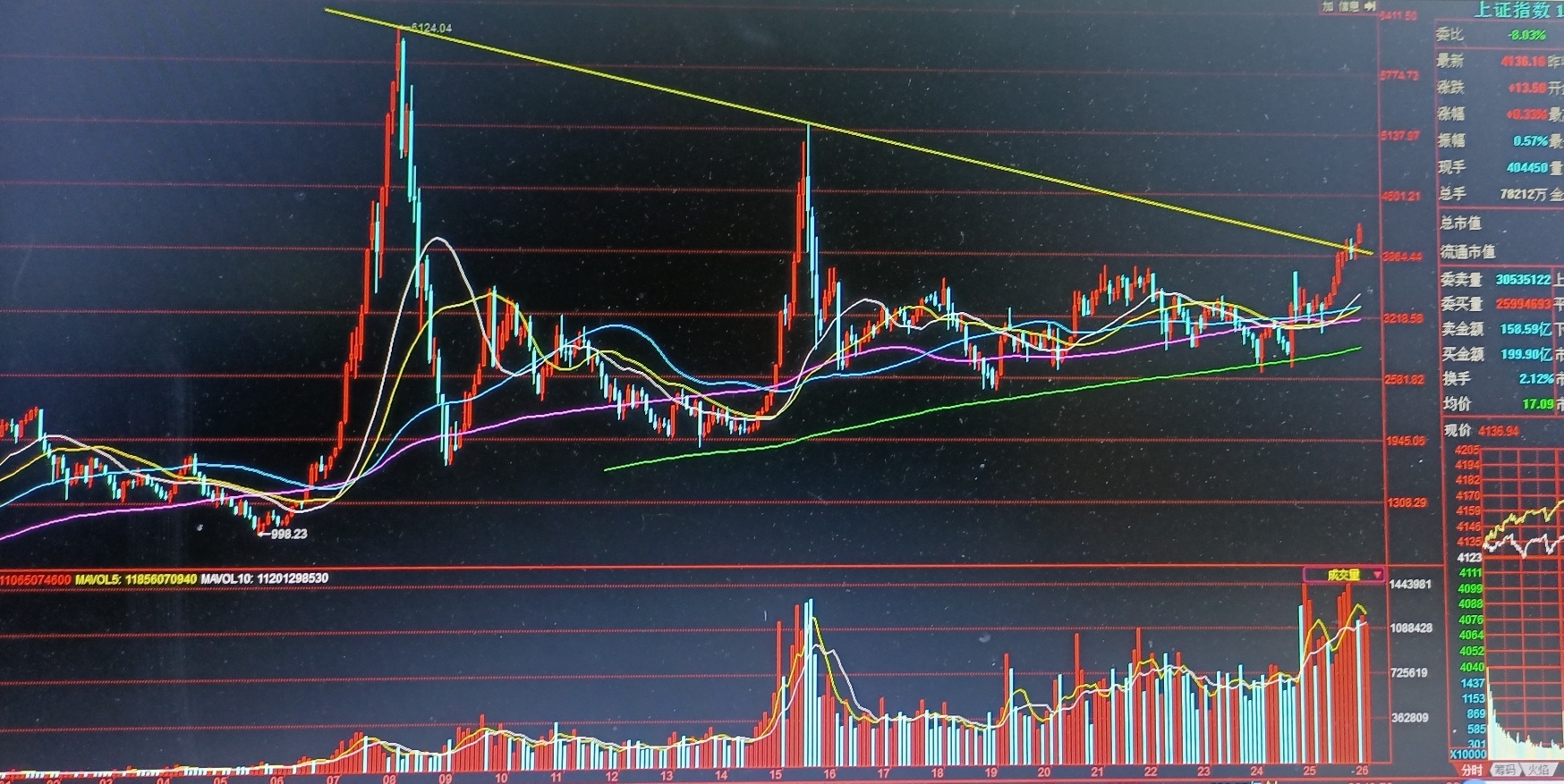 从走势看,沪指2025年的上升趋势线,即2025年4月7日3040点、6月23日3347点、8月4日3547点、10月13日3800点等低点连线,于同年11月18日跌破后反成为压力,上周四上行刚好受其所压,同时也受去年8月26日3888点、同年10月30日4025点两高点连线所压,该两连线如有效上破,年内或逐步收复2015年6月中下旬的3个高位下跌缺口,即6月16日5029-5048点、6月19日4744-4780点、6月26日4456-4483点,这3个缺口为历史顶部跌出的标志,至今尚未回补,而近10年大箱体上边3730点被放历史成交量上破确立牛市的基础后,未来这3个缺口或成为这轮牛市在今年收复的目标,甚至更上一层楼。(913)