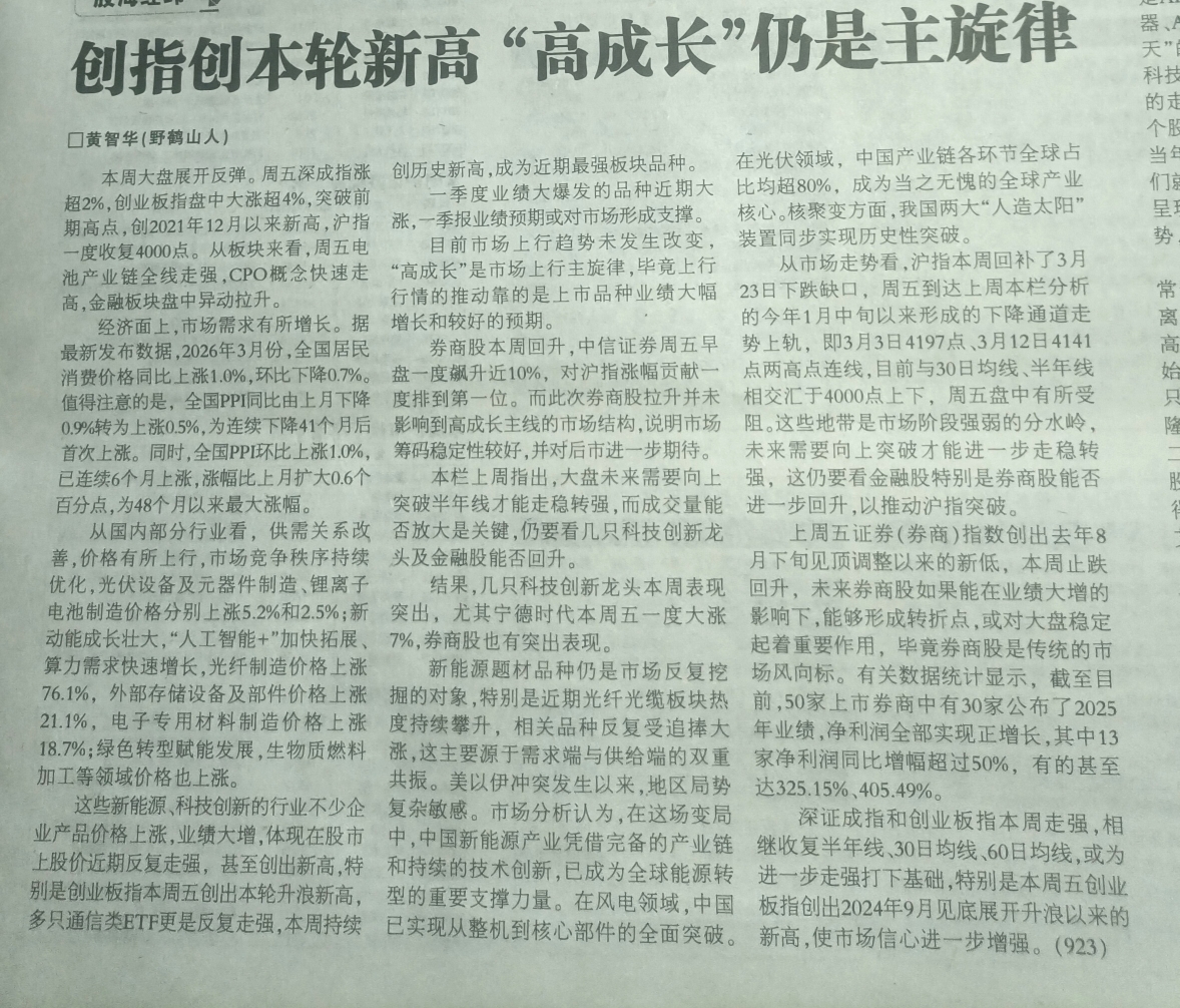 (本文不作为投资建议,本文内容黄智华发表在《投资快报》)