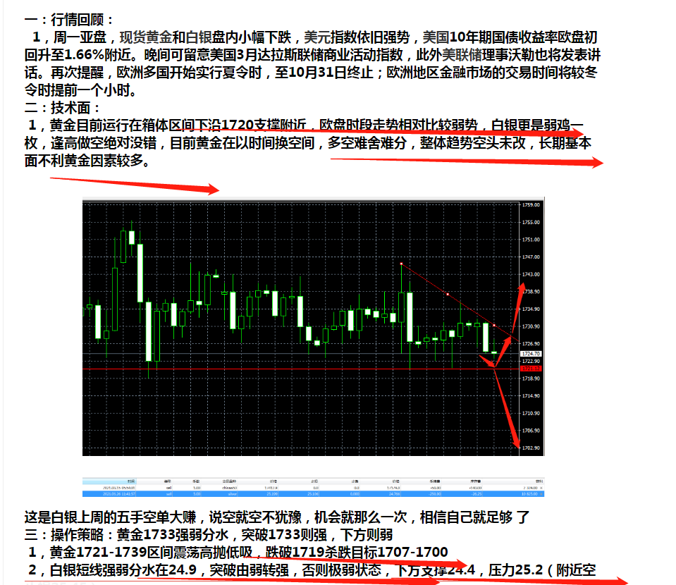 2,黄金短线强弱分水在1721强势突破又看震荡,依旧逢高做空策略不变。