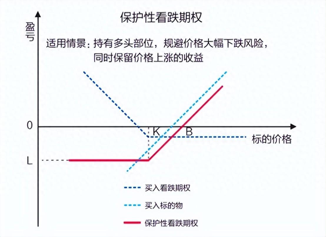投资者持有标的期货多头头寸,希望规避标的物价格下行的风险,同时保留价格上涨时的收益。买入看跌期权为持有的标的多头买了份“保险”。