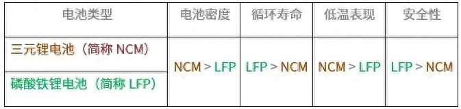 表1三元锂电池VS磷酸铁锂电池的各方面性能比较