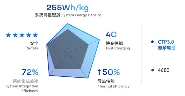 麒麟电池,也是宁德时代于2022年6月发布的基于电池结构技术优化的技术。体积利用率突破72%,能量密度达到255Wh/kg。从宁德官方的介绍看,CTP3.0技术是将内部横梁、液体冷却板和隔热垫等集成在一个多功能弹性夹层中。本次小米发布会上表示,小米自主研发了CTB一体化电池体术,其电池集成效率高达77.8%,性能提升24.4%,高度降低17mm。并且其在散热方面也更加优秀,电芯两侧利用凝胶隔热材料,散热面积也超越行业水平。
