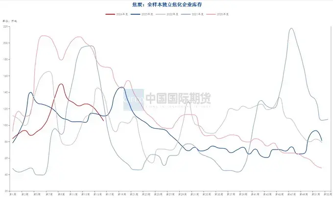 随着钢厂利润的修复以及铁水产量的回升,下游钢厂炉料开始面临紧缺的局面,钢厂拿货积极性有所提升,部分品种紧催货源的情况时有发生,钢厂补库意愿逐渐增强。最新一期钢联的统计数据显示,247家钢厂焦化厂炼焦煤库存为708.49万吨,月环比下降64.32万吨,247家钢厂焦炭库存为593.92万吨,月环比下降15.11万吨,钢厂炉料库存降幅明显。而焦化厂方面,最新一期的全样本独立焦化企业库存为105.26万吨,月环比下降22.21万吨,焦化厂库存也处于相对低位。综合来看,后续若钢厂持续复产,对炉料的采购将进一步增加,对炉料价格构成了一定的利好。
