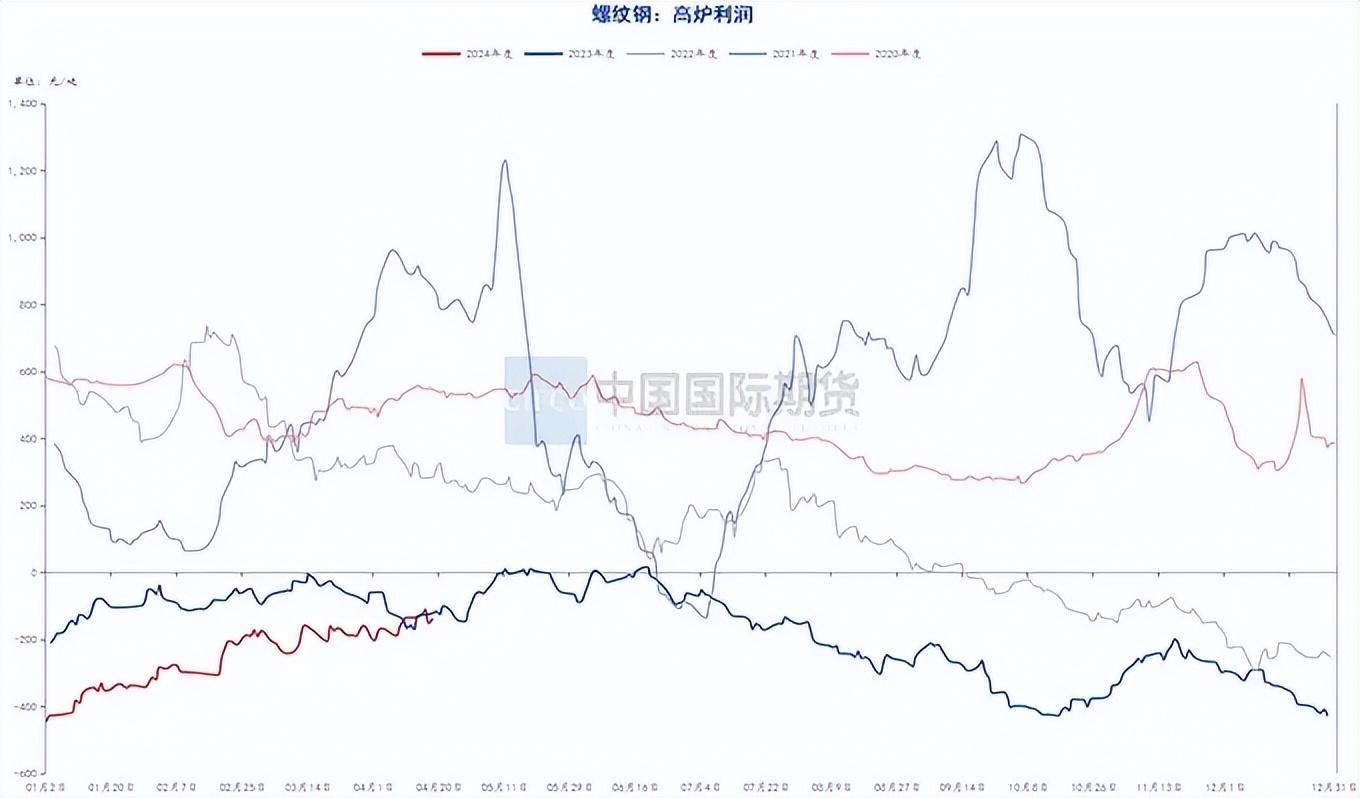 钢厂利润:4月份钢价小幅上涨,钢厂利润有所改善。从钢联调研统计的螺纹钢生产利润数据看,至4月中旬螺纹钢高炉生产利润为-137.77元/吨,电炉利润为-269.58元/吨,高炉与电炉利润均有不同程度的回升。不过总体来看,随着钢厂利润的增加,高炉复产的比例也在增加,而由此引发的炉料价格上涨恐将进一步压缩钢厂利润。