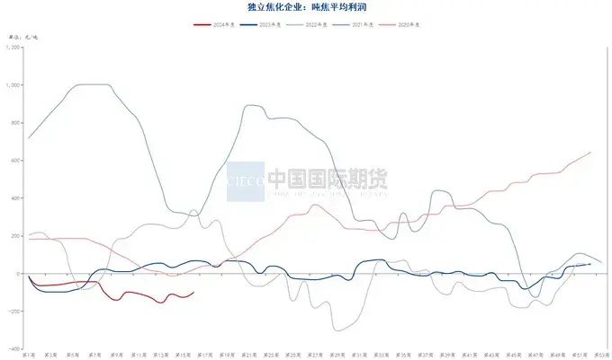 图5-2:独立焦化企业吨焦利润(元/吨)