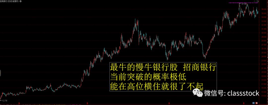 银行板块是资金长线驻守,走势慢牛特征。请看银行股那个不是顶在历史高位?要么突破走大牛,要么回落寻求支持。
