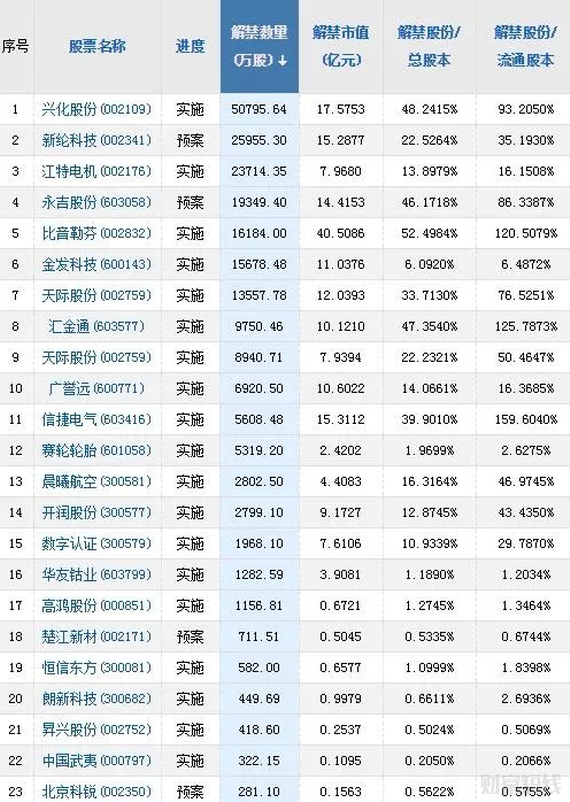 今日解禁股