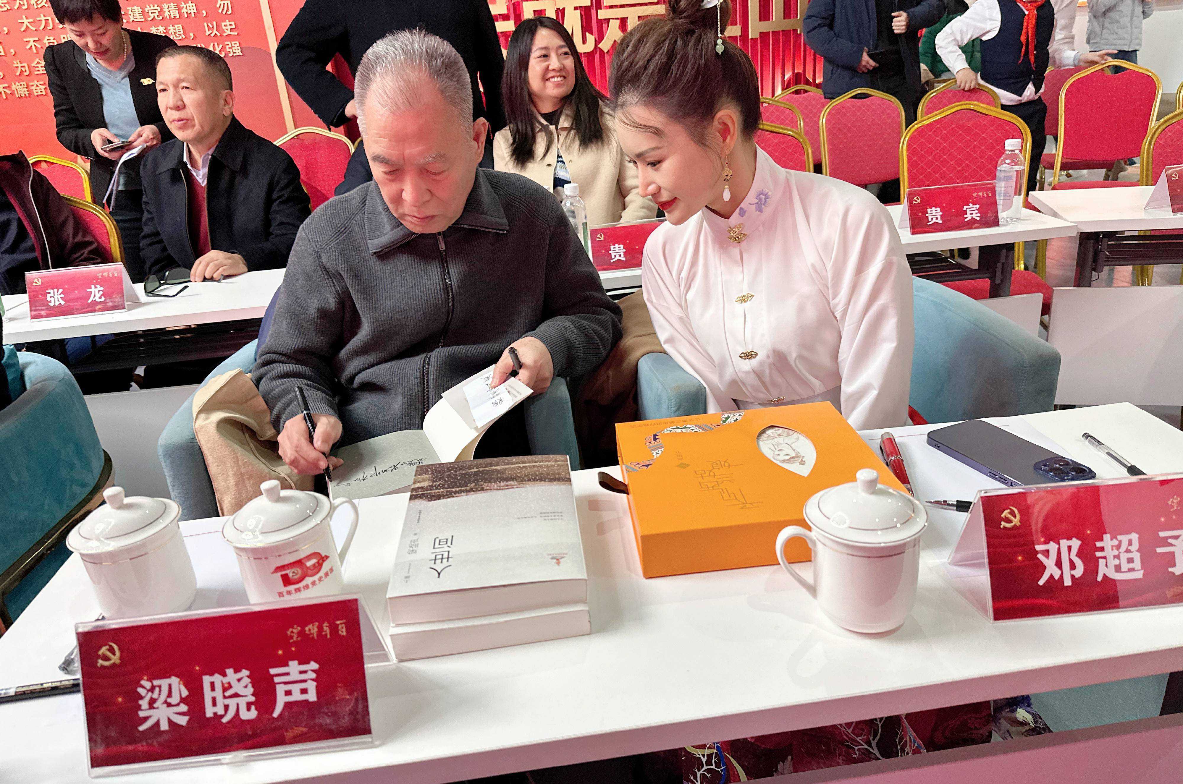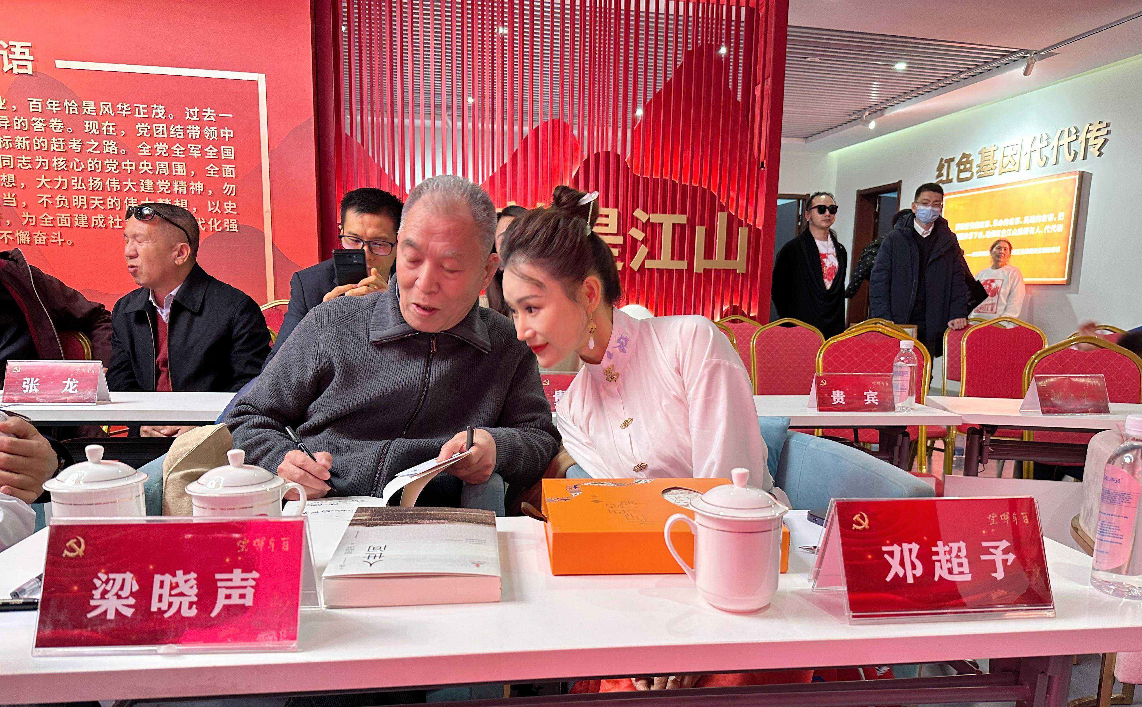 活动中,邓超予与梁晓声先生和金龟子老师一起给红色少年们颁发证书,随后,她与梁晓声老师共同探讨文学与创作,并为自己即将出版的书籍题字。“有幸遇到梁晓声先生,非常喜欢他的《人世间》,全程追剧。”活动现场,邓超予难掩欣喜,在与梁老师的互动中感受到文学大师的风范,并发文表示:“愿每位朋友,如梁老写的那样:享受生活中的一切美好!”