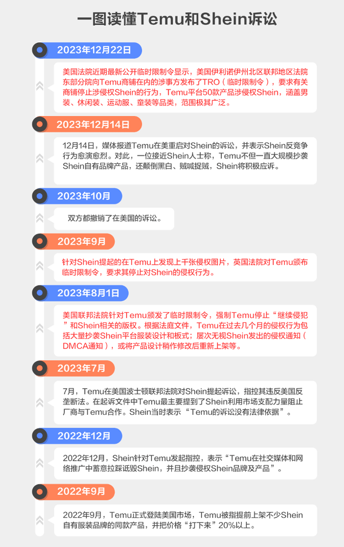 现在回顾这场贯穿几乎一整年的诉讼,折射出的不仅是Temu对于侵权的持续,更是在跨境电商竞争日趋白热化的背景下,Temu对Shein成熟柔性快反供应链的觊觎。