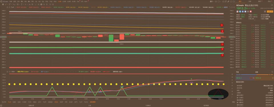 通过对黄金小时图解析得知,黄金从早盘冲高回落到下方1901附近止跌反弹,早盘就已经说过技术上有调整需求,我们从下方的附图可以看到目前已经出现了反转信号,短期上方我们继续重点关注4,5号均线的压力,下方我们重点关注1,2,3号均线的支撑,在操作上我们继续高空低多思路,具体建议如下: