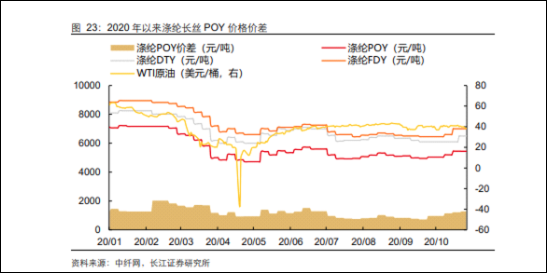 进入10月份后,国内进入寒冬,气温低于往年,推动了国内纺服需求快速回暖。同时,冬装服装较厚,使得涤纶长丝需求有望明显增加。带动着涤纶长丝需求修复,走出低谷。