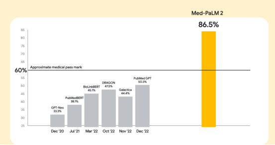 最近,谷歌微调后的Med-PaLM,开始了在医学问题上的一路狂飙。