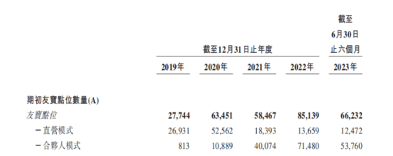 2022年,友宝在线合伙人点位数从最高峰的7.1万个下滑至5.3万个,2023年上半年再次下滑至5万个。