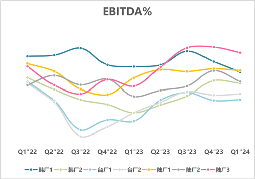 主要面板厂商EBITDA%走势,根据公开财报整理