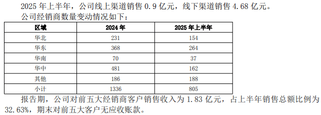 经销商数量也从2023年的1774家减少至2024年的1336家,一年内流失近四分之一;2025年上半年,酒鬼酒经销商数量进一步缩减至805家。