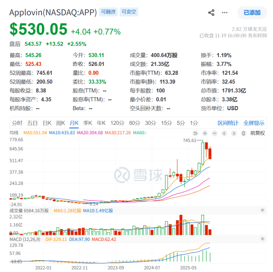 AppLovin股价走势图