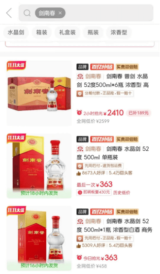在需求放缓与渠道重估的行业背景下,白酒行业的周期正变得更慢、更深、更难预判,剑南春能否借“双11”的销量势能破局,重塑品牌竞争力,仍有待市场检验。
