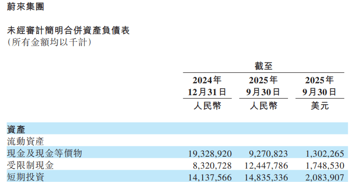 截至2025年三季度末,蔚来现金及现金等价物+受限制现金+短期投资共367亿元,但其中现金及现金等价物只有92.71亿元,较去年底的193.29亿元直接“腰斩”。