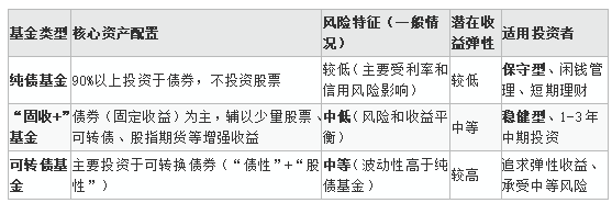 在进行稳健理财配置时,投资者常关注三类核心产品:纯债基金、“固收+”基金和可转债基金。它们在风险和潜在收益方面各有侧重。
