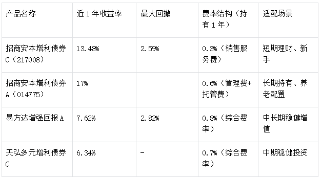 1. 新手/保守型投资者:优先选择招商安本增利债券C类(217008),零申购费、低波动的特点可降低入门风险,适配理财初期“试错”需求。