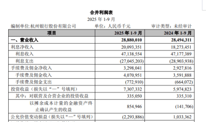 图源:杭州银行2025业绩快报