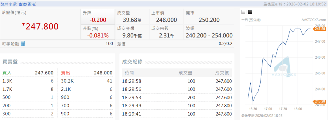 而在富途的暗盘,东鹏饮料最高仅摸到254港元,最低达到240.2港元,这意味着每手最高账面收益仅600港元,最高账面亏损则可达到780港元。