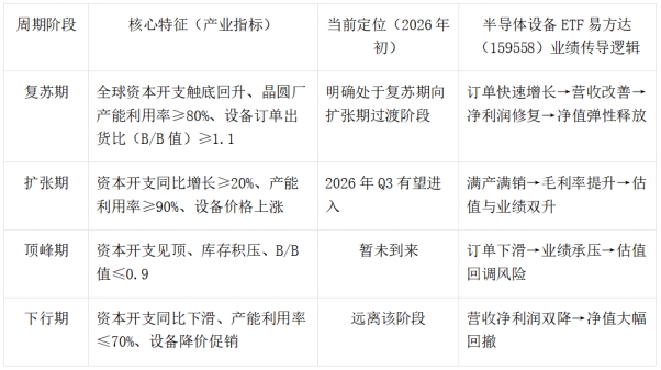 半导体设备ETF易方达(159558)的业绩与行业周期强绑定,以下坐标系可精准定位其投资时机。