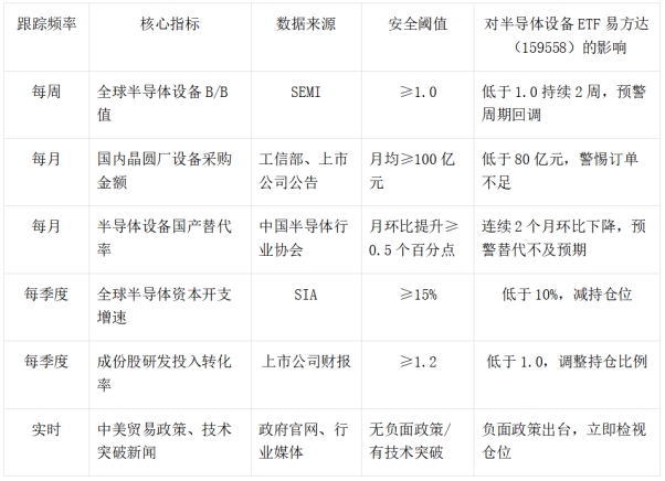 持有半导体设备ETF易方达(159558)需建立动态跟踪体系,以下指标直接关联基金表现。