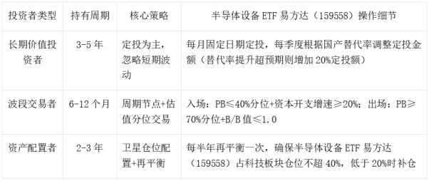 半导体设备ETF易方达(159558)的操作策略需随周期动态调整,以下方案可最大化投资收益。