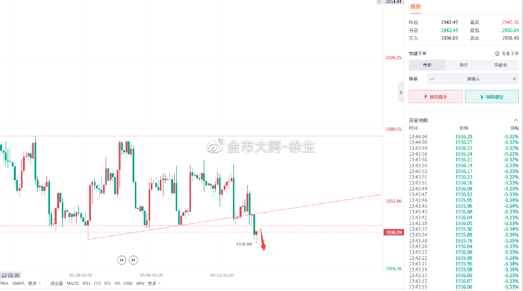 昨日黄金先涨后跌,涨是数据面带动,跌是消息面影响,本周外界因素影响多,科学技术分析交易并不是很受用,不过现在行情日线持续收阴,而且已经来到低位,后市下破的几率还是很大的,日内建议反弹先做空,点位看前期低点1940附近,看破1930后是20,下方支撑1918附近,给到止步才做反弹。