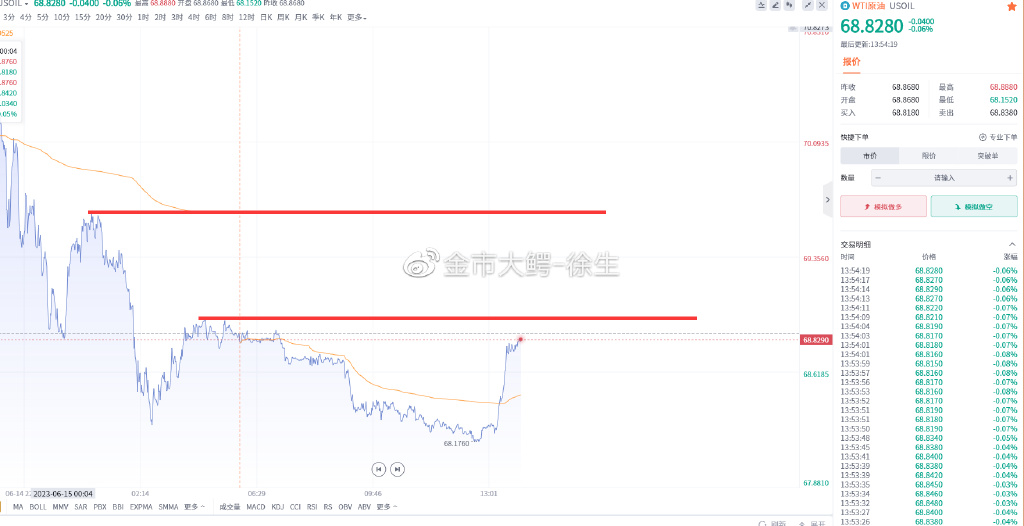 昨日黄金波动比较大,提前布局52空小赚后通知了稳健撤离,晚间数据利多拉升空单避开风险,见在60止步二次空可惜时间问题没拿太久,原油昨日69.9左右空还可以,就是不是最高点,盘中通知高位补仓获利百点后撤离,整体有赚,但赚的不多,本周行情还是很大的,但点位精准度降低了一些,实盘收益比较一般,如果是只看博文跟单效果更差,但事已发生,只有发发牢骚,后面更用心的做好每一笔交易让收益增多一些!