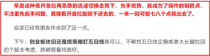 但好在对于先后手的重视以及创业板五日线的大策略都在关键时候起了作用,早盘锁住了利润,也没让自己莽进去,午盘也又锚死了创业板五日线: