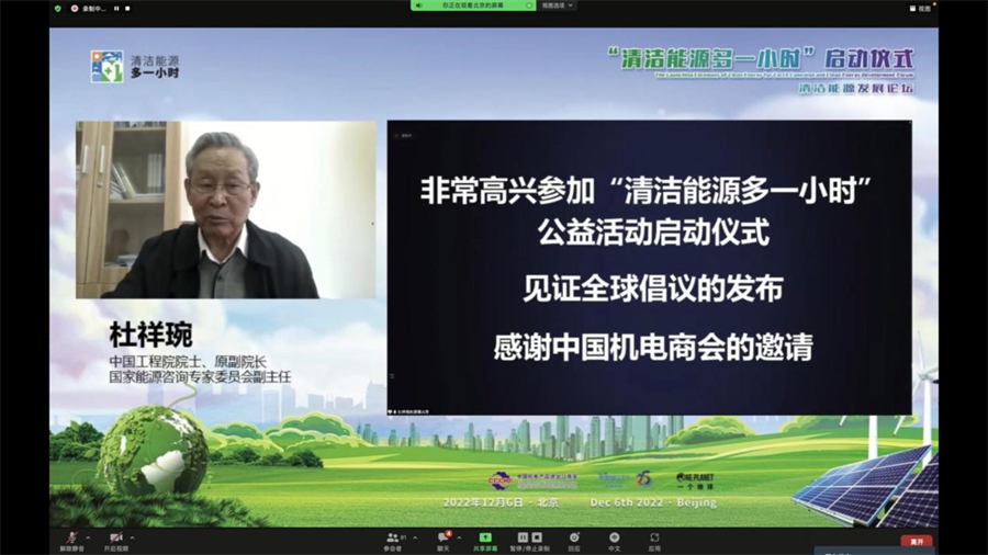 张钰晶在致辞中表示,绿色发展已成为全球共识,应对气候变化,实现碳中和必须全球携手合作。“清洁能源多一小时”活动构想新颖,且具有示范效应,机电商会将积极推动倡议落实,共享全球绿色发展的机遇,实现高质量共赢发展。