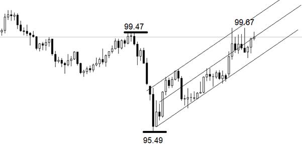 行情方面,日线级别,美元指数处于上升通道内部,没有出现明显的筑顶结构,上涨波段在通道内部延续的概率较高。中期低点在95.49,中期高点在99.47,当前上涨波段的最高点是99.67,已经突破中期高点,未来将寻找新的中期高点。