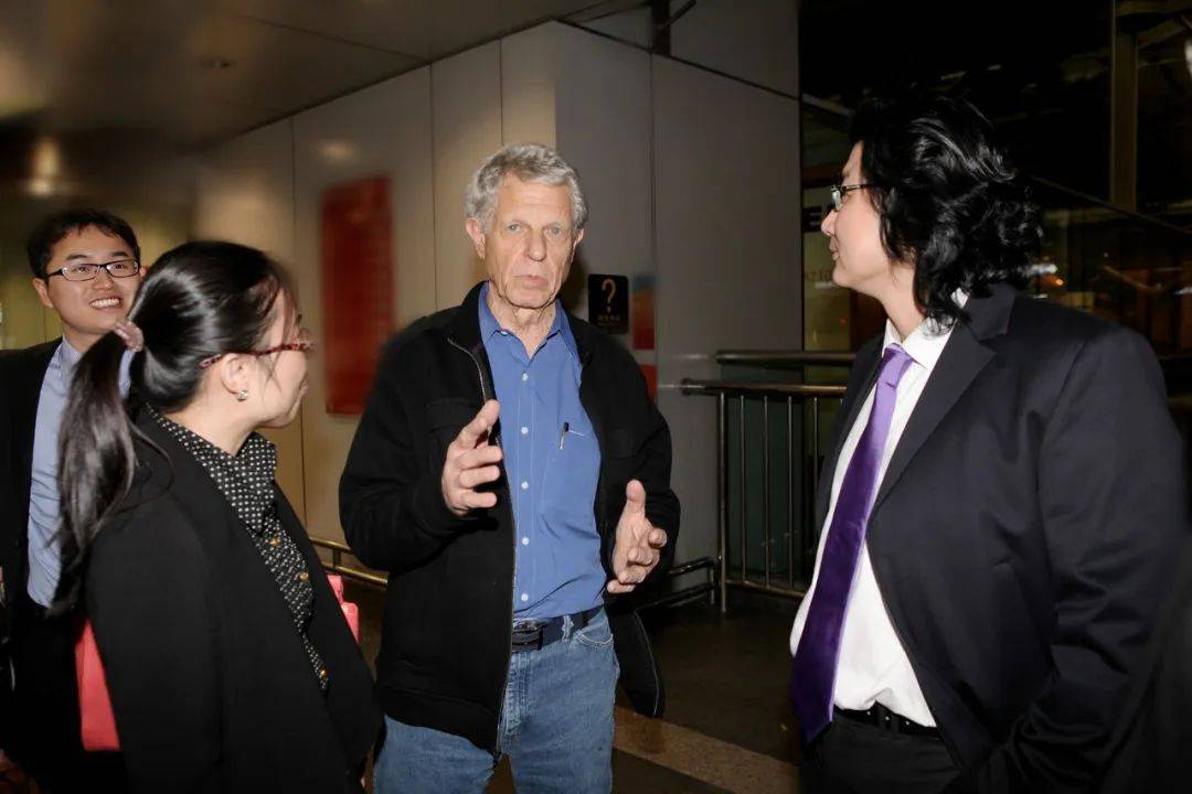 艾·里斯先生(中)与中外管理传媒社长、总编杨光(右一)交流