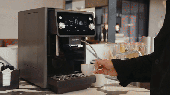 仅用十几秒,一杯浓香四溢的拿铁,便从一台精致的咖啡机里完美呈现。浓郁的咖啡与绵密的牛奶泡沫交织在一起,散发出令人陶醉的香气,瞬间飘遍了苏州某五星级酒店的早餐厅。