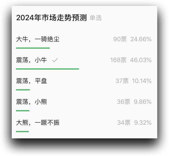 明天,我们的2024年终投资总结将发布,去年,我们统计了大家对明年市场的看法,大多数朋友猜对了,今年是一个“震荡,小牛”市。