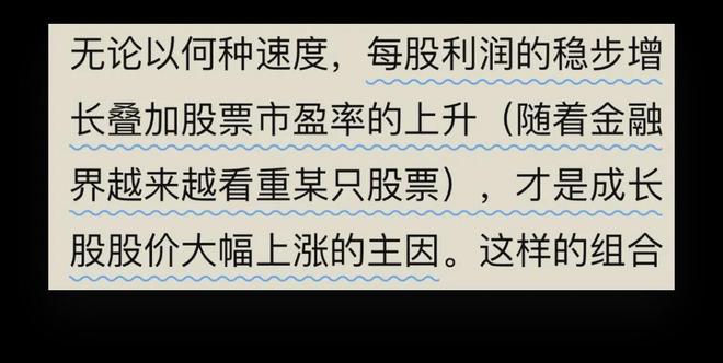 最近我也在看费雪的书,他对成长股的评价就极其符合当下生物医药的特点:无论以何种速度,每股利润的稳步增长叠加股票市盈率的上升(随着金融界越来越看重某只股票),才是成长股股价大幅上涨的主因。