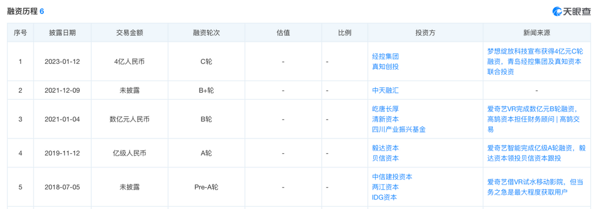 据天眼查APP显示,该项目曾经获得多轮融资。VR项目进展不顺,如果再进军AI视频生成赛道,也许并不是一个好的时机。