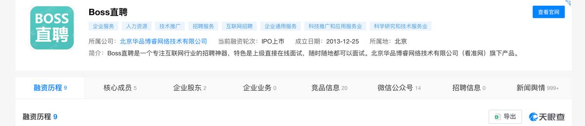 天眼查APP信息显示,BOSS直聘成立于2013年,当时的互联网行业还处在野蛮生长的早期阶段。