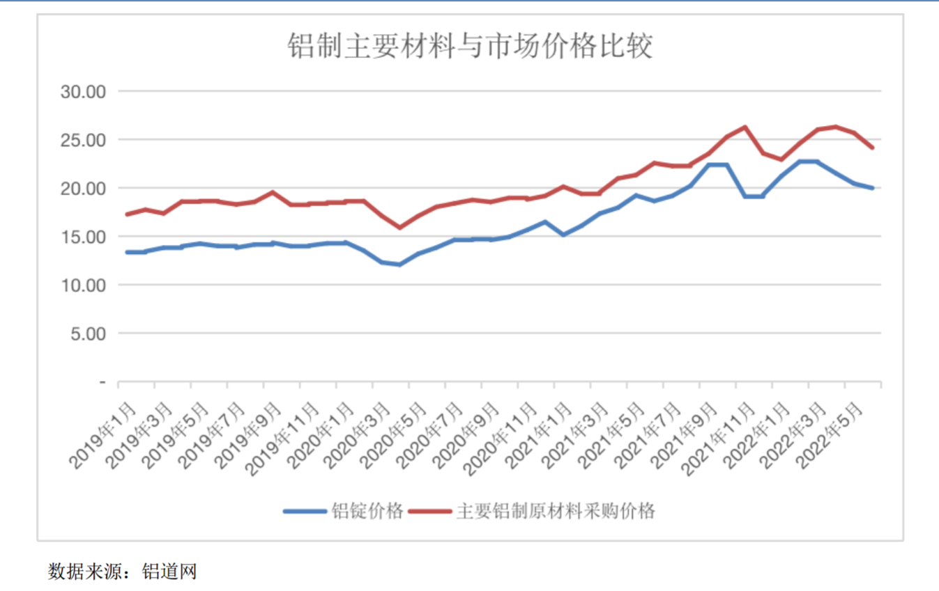 板翅式换热器和换热系统的成本构成中,铝材是最重要的原材料,公司铝材在产品单位 成本的比例超过 60%。报告期内,长江有色金属网公布的平均铝锭价格分别为 13.94 元/公斤、14.19 元/公斤、18.90 元/公斤和 21.40 元/公 斤,2020 年度、2021 年度和 2022 年 1-6 月平均铝锭价格分别较上年增长 1.79%、33.19% 和 13.23%;2020 年第二季度以来,铝价呈现波动上涨走势。