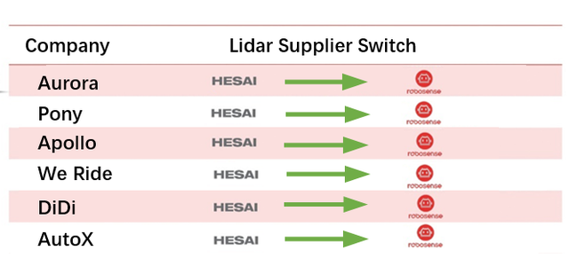 目前,原使用禾赛激光雷达产品的百度萝卜快跑、文远知行等头部运营商,已经明确将下一代车型订单切换到速腾聚创。禾赛由于技术路线的原因,正在不断失去核心客户。